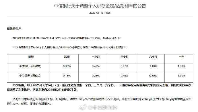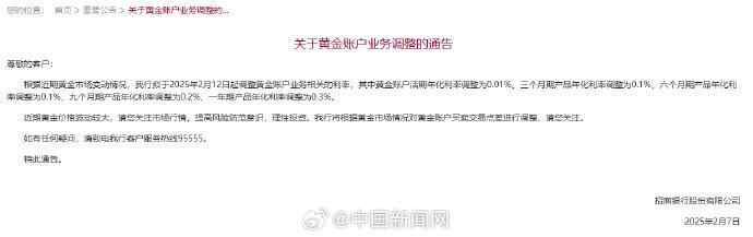 中信银行也宣布将于2月15日起下调个人积存金活期、一个月、三个月、六个月、一年年化利率至0.15%、0.25%、0.4%、0.6%、1%。降幅为20-58个基点。