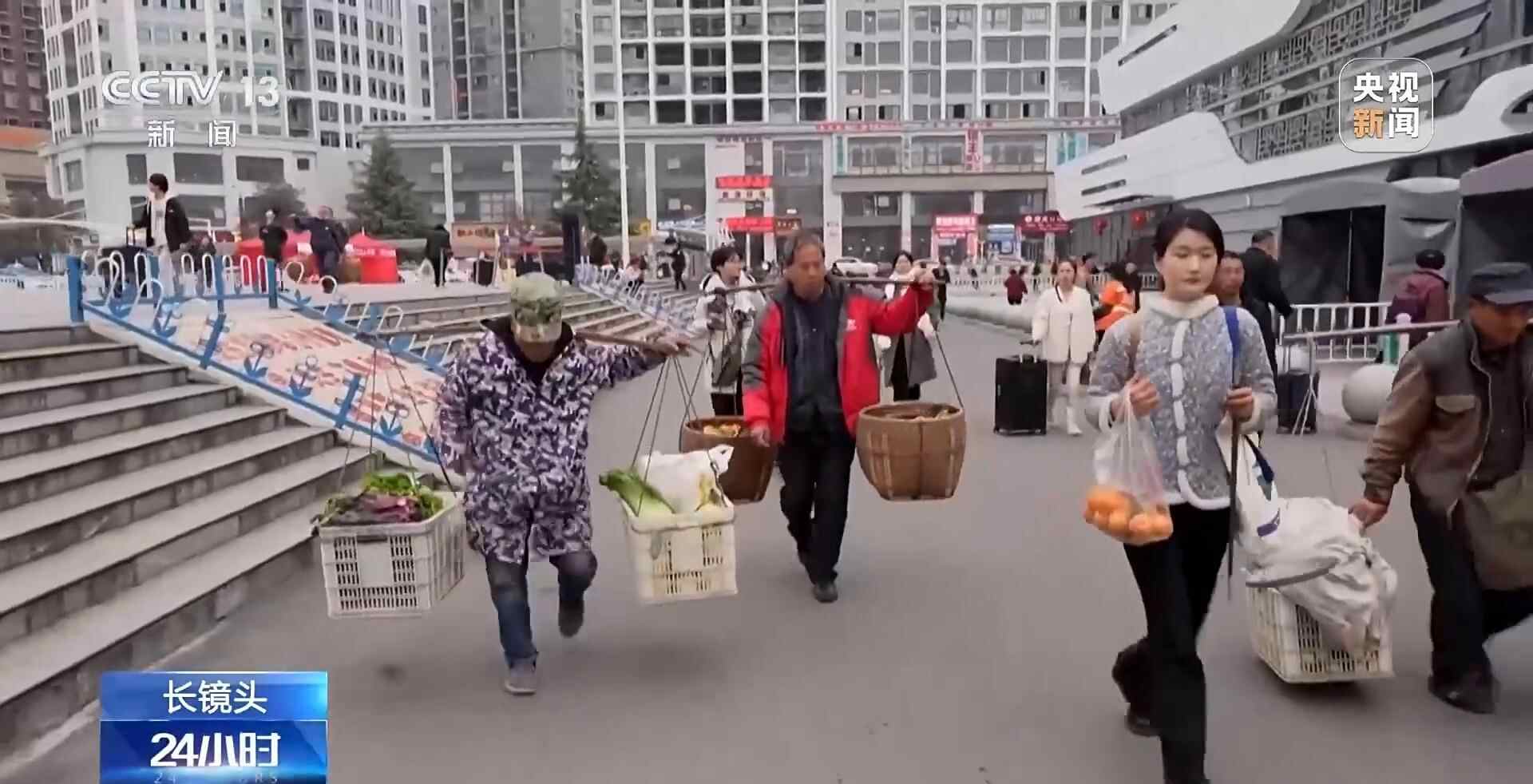 列车即将抵达,龙绪友挑着担子,龙飘飘背着背篓,父女俩和身边的“扁担大军”一起走上月台。
