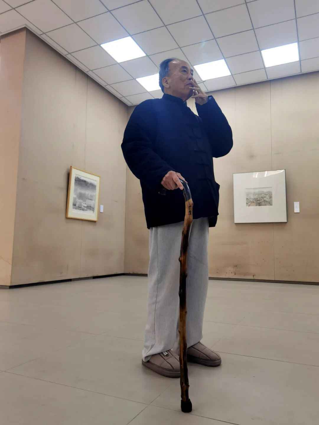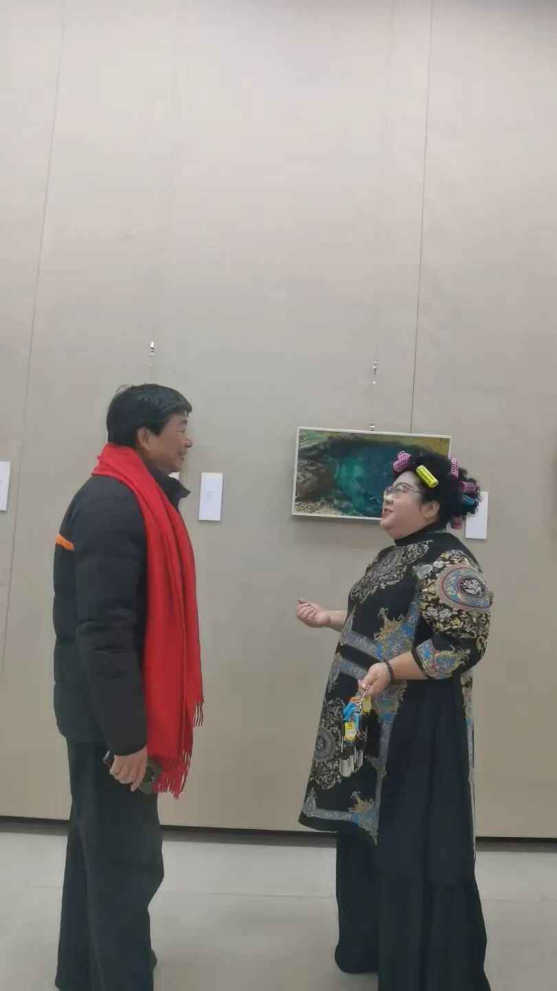 上午,“书卷气”“翁源兰”两个展览的座谈会,在翁山诗书画院举行。10时半到的展厅,第一眼就见到了刘国玉先生。他穿着黑色布棉袄,非常挺拔、硬朗,大山一样矗立着。赶紧过去,鞠躬、握手。大家都很开心。随后跟着刘先生一路观展,他不时点评。