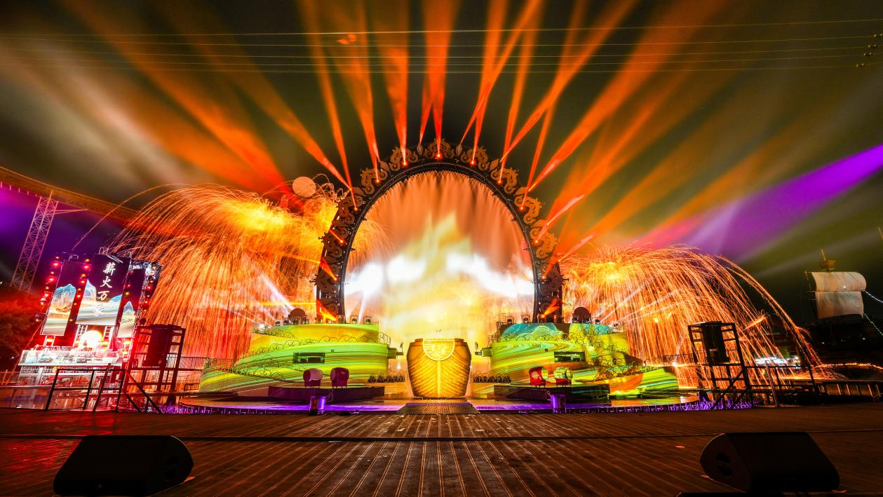 在内容呈现上,《梦回岭南》以岭南地区文化为基础,通过多个篇章串联起音乐、歌舞、非遗表演等多种艺术表现形式,带领观众穿越从秦汉到近代的千年历史长河,感受岭南文化的独特魅力和发展变迁。其中大型山体打铁花表演最为夺目,12处点位同时打出铁花,百名演员手持火把,一时间“火树银花落,万点星辰开”,将岭南民俗祭祀南海神明的场景生动再现,让观众感受到了岭南文化的深厚底蕴和独特魅力。