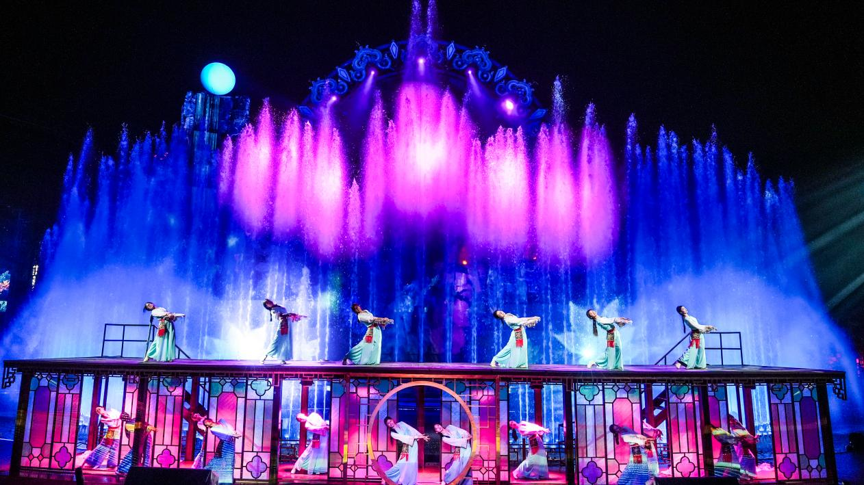 广州融创文旅城主题娱乐公司总经理王晓波表示,《梦回岭南》以岭南文化为基底,精选经典诗词名句,如张九龄的“海上生明月,天涯共此时”、文天祥的“人生自古谁无死,留取丹心照汗青”等,结合本土历史事件与人文典故,通过音乐、歌舞、武术及创新非遗表演等多种艺术形式,打造了一台前所未有的国风大秀。150多名专业舞蹈演员、100天的精心排练、750平方米多维演出空间、300平方米巨型升降水幕等顶级配置,为观众呈现了一场震撼的视听盛宴。全年上演,平日每天1场,节假日增至2-3场。