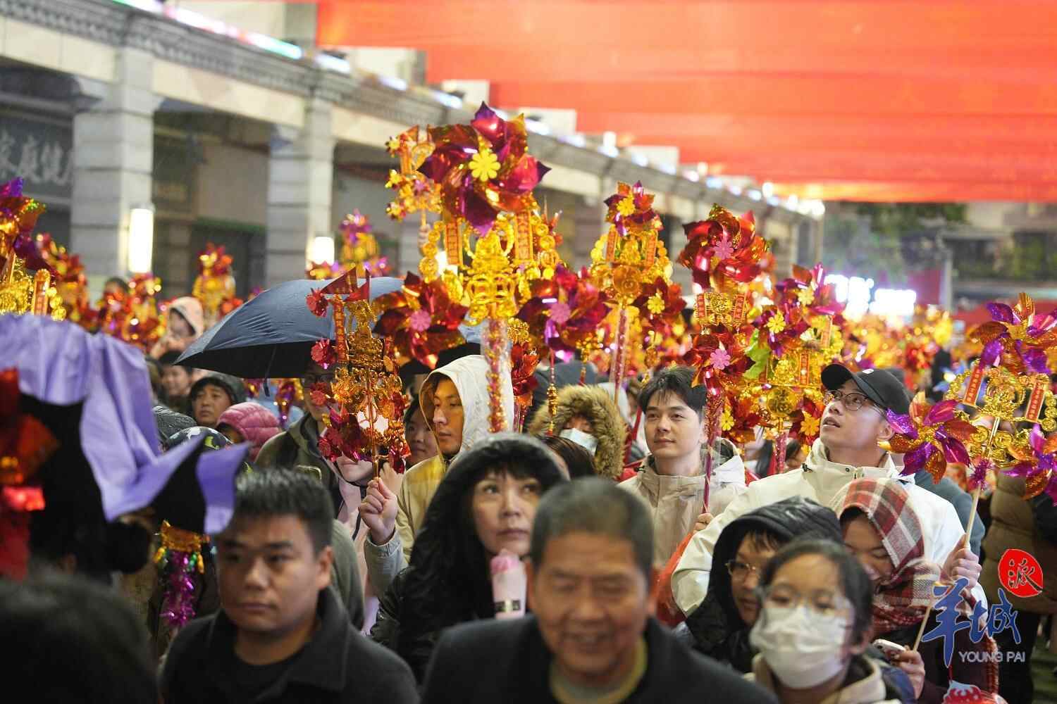 “行通济”是佛山延续了数百年的盛大民俗活动,每逢元宵佳节,家家户户扶老携幼,自晨早到凌晨,举着风车、摇着风铃、提着生菜由北到南,走过通济桥,口中默念“行通济,冇闭翳”,祈求新的一年平安顺利,阖家幸福。