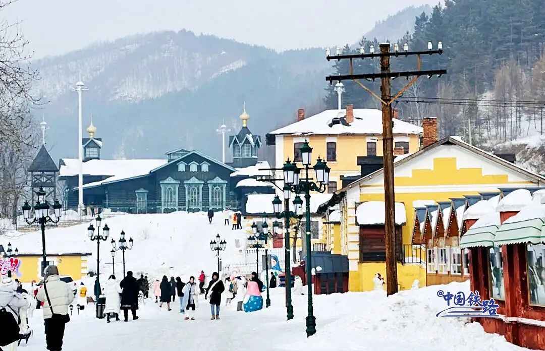 横道河子镇因“中东铁路”的修建而兴起,是一座“火车拉来的小镇”。随着冰雪旅游的持续火热,这个昔日被山岭环抱的小镇成为热门目的地。