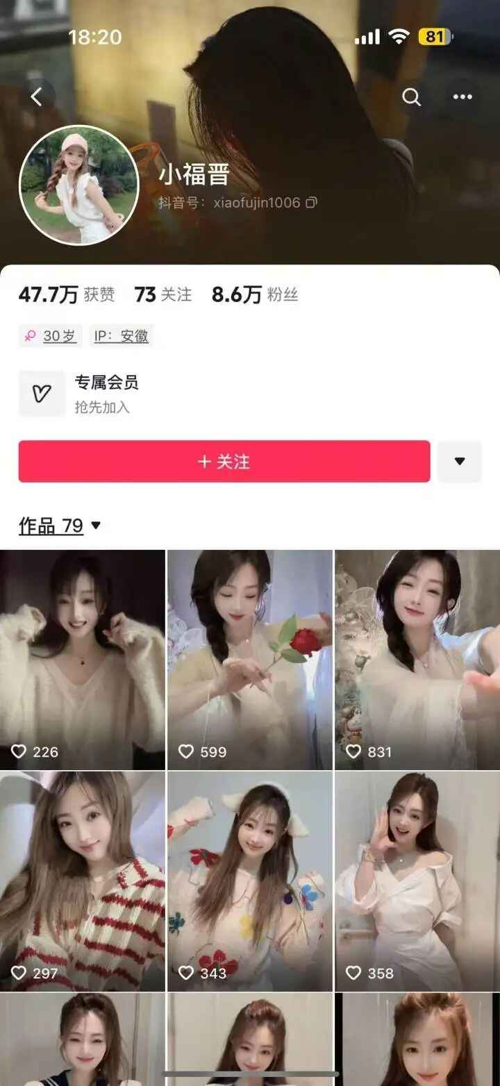 今天18时,崔漫莉抖音账号改名为小福晋,删除了个人简介,原本109个作品也删减为79个。
