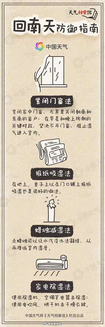 由于暖湿气流加强,今天白天粤北或出现回南天。遇到回南天怎么办?紧闭门窗法、报纸吸湿法、家电除湿法可以试试↓↓