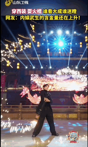 现场,郑业成还体验非遗火棍表演,这段表演已在网上引发热议。