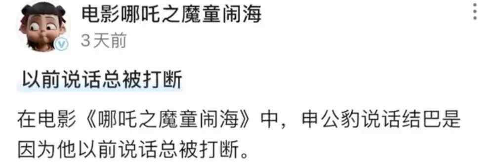 而《哪吒2》官方对此回应称,申公豹说话“结巴”是因为他以前说话总被打断。