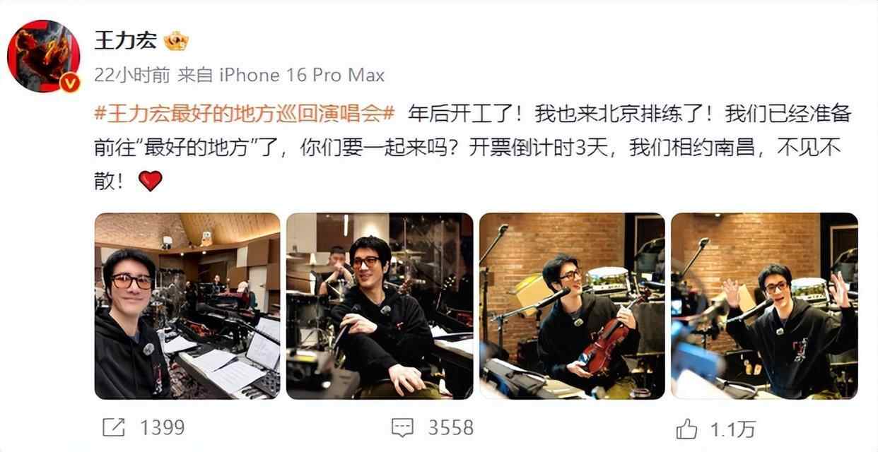 2月11日,王力宏更是晒出年后开工照片,称来到北京排练,已经准备前往“最好的地方”了。