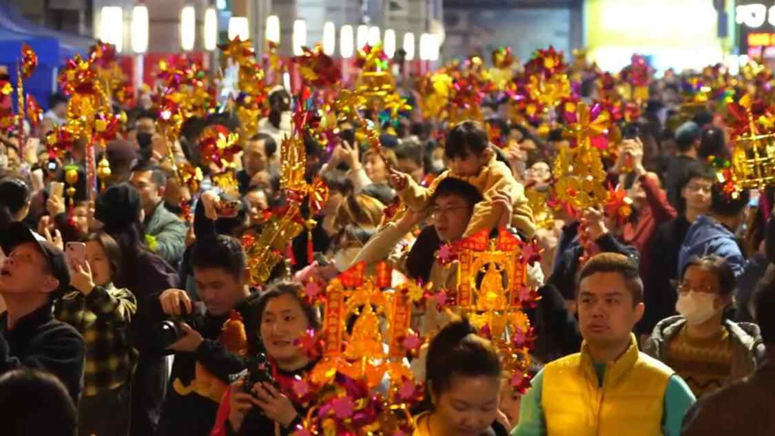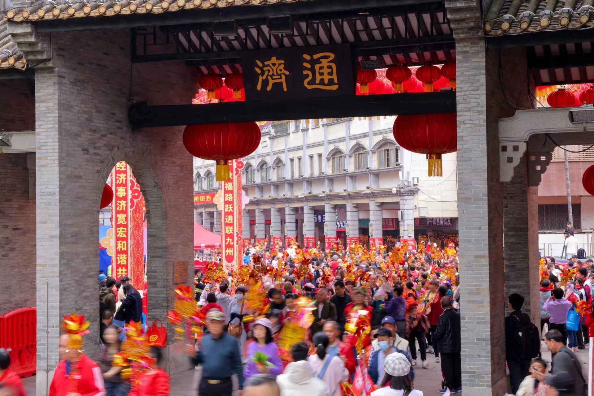 “行通济,冇闭翳。”元宵节的佛山,张灯结彩、热闹非凡。行通济大型民俗活动迎来了高峰期,活动现场的人潮绵延不绝,大家举着风车、拎着生菜,带着美好祝愿满心欢喜走过通济桥。