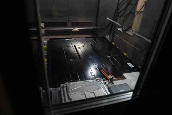 在本次试验中,红旗电池包被置于-40℃至60℃的极端温度条件下,并需要在30分钟内完成温度的快速转换,并在极值温度下承受8小时,共经历5次循环。试验结束后观察红旗EH7电池包,并无泄漏、破裂、起火、爆炸现象,成功通过第一关,证明了其动力电池的可靠性能。