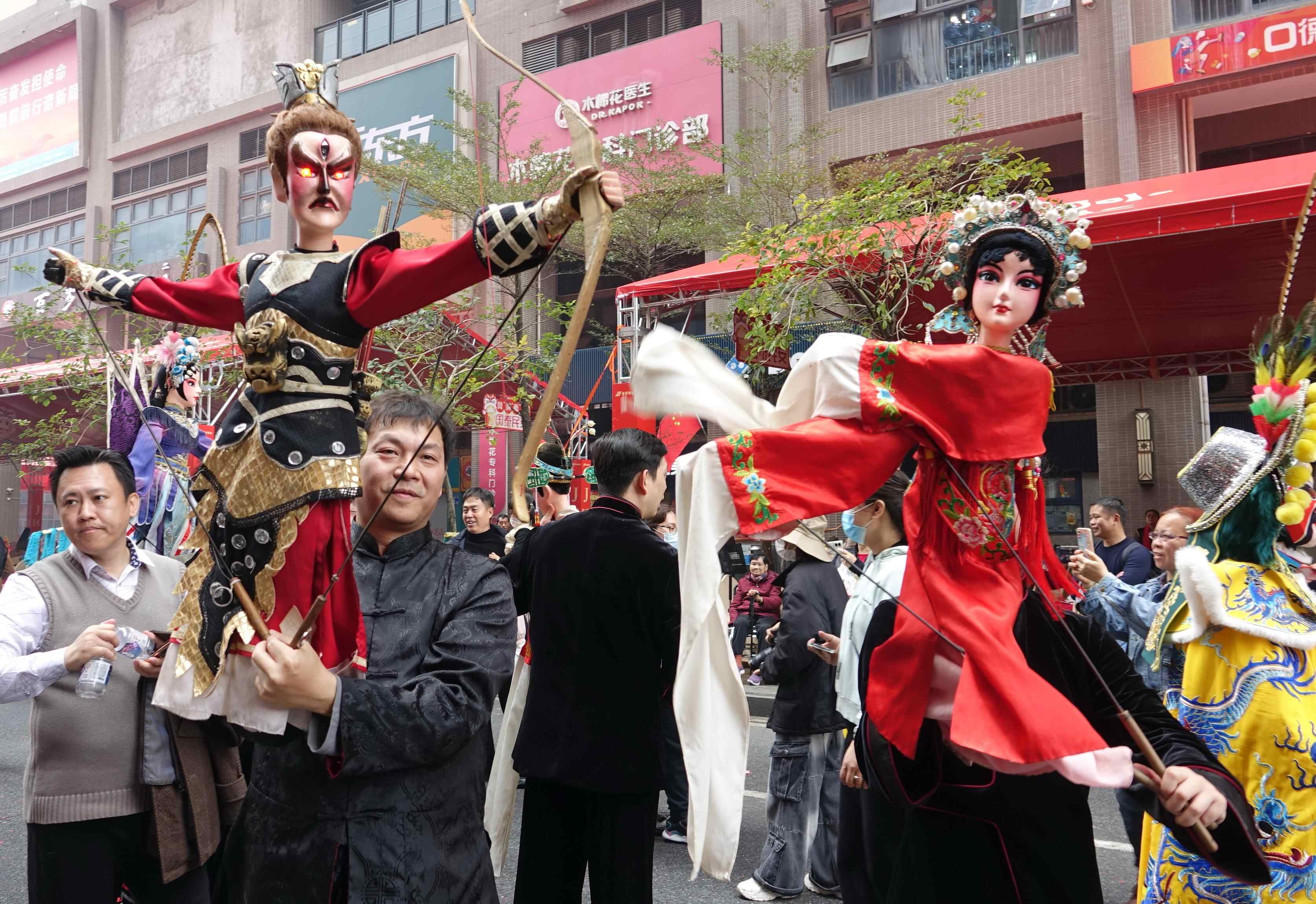 巡游中,十八大方阵各展风采。八音锣鼓老艺人奏响了千年古韵,少儿武术队英姿飒爽;北帝銮驾护卫队庄严威武,学龄孩童手提鱼灯,点亮了纯真的梦想。