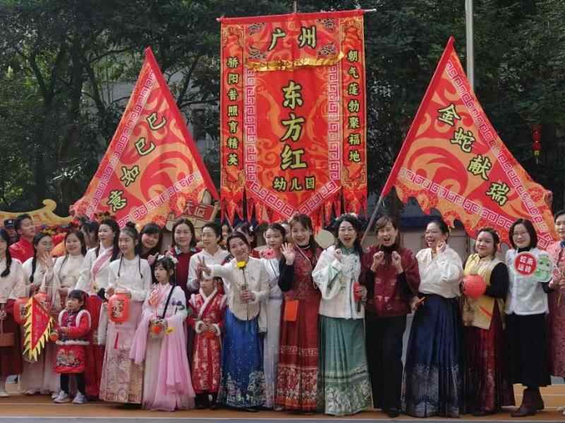 尤为引人瞩目的是“小龙狮传承方阵”,五十名少年以坚定的步伐舞动非遗之光,赢得了观众的阵阵喝彩。“好家风方阵”中,祖孙三代身着汉服,展现了孝亲睦邻的文明新风,成为了镜头下的焦点。