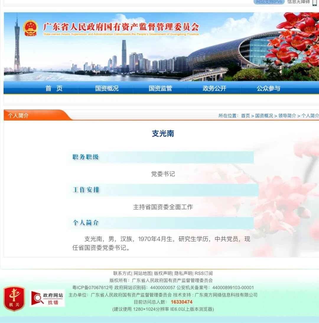 2月12日,广东省人民政府国有资产监督管理委员会(以下简称“广东省国资委”)官网“领导简介”一栏更新信息显示,支光南已任广东省国资委党委书记,主持该委全面工作。