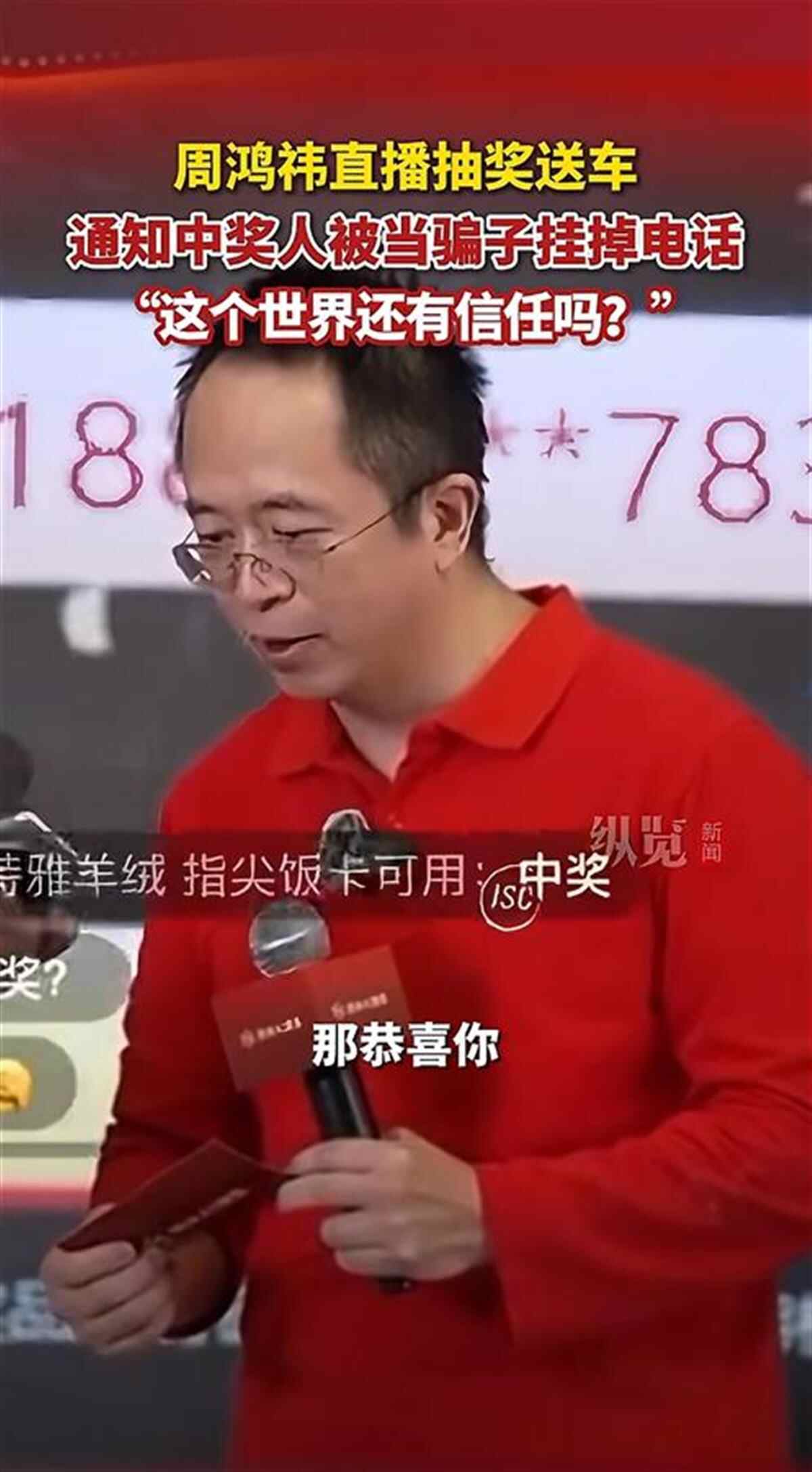 2月12日,360集团创始人周鸿祎直播送车。抽奖开始后,周鸿祎现场连麦首位中奖车主,不料对方反应异常平淡,仅简单回应“知道了”便挂断电话。