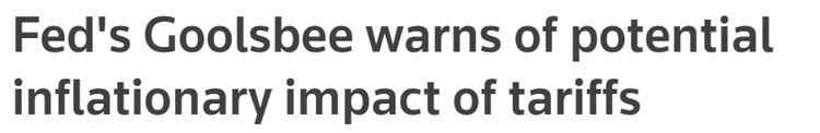 连日来,芝加哥联邦储备银行行长奥斯坦·古尔斯比等多位美联储官员已纷纷表示,美国对主要贸易伙伴加征关税可能引发美国的长期通胀,从而阻碍美联储抑制通胀的政策努力。