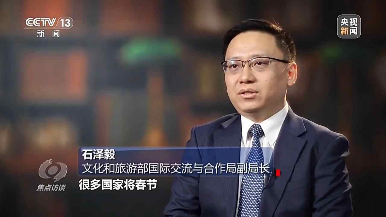 文化和旅游部国际交流与合作局副局长 石泽毅:春节文化在全球广泛传播,为世界各国人民近距离感知中华文化打开了一扇窗,也为促进中外民众相知相亲、不同文明和合共生架起了一座桥。