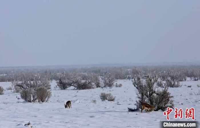 近日,护林员王伟踏着厚厚的积雪,与同事们行走在公益林腹地,为沙漠中的野生动物投放草料。