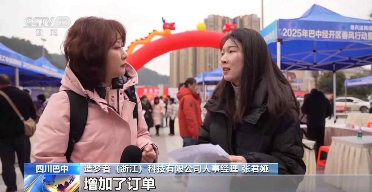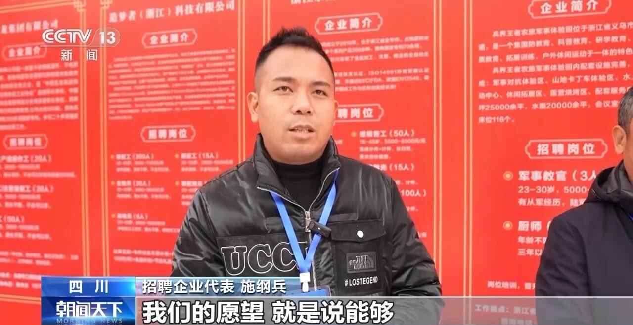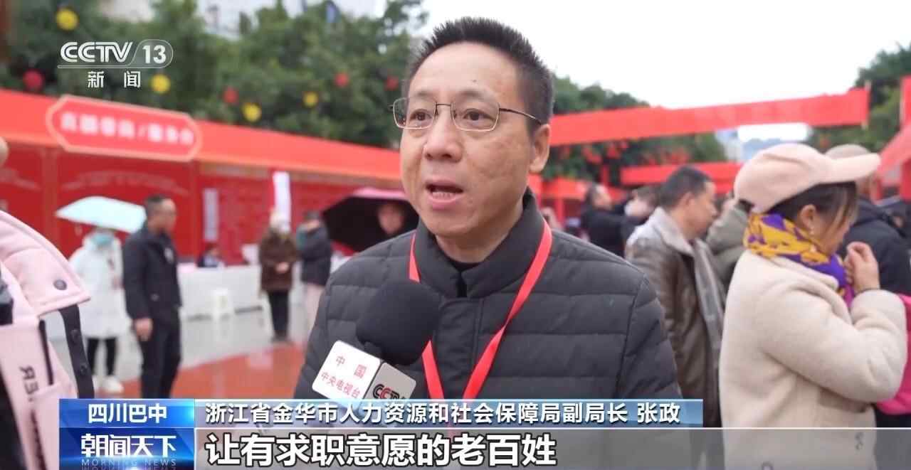 总台央视记者 唐蕾:这里是四川巴中的春风送岗招聘会现场,来自浙江金华的25家企业带来了一万多个岗位,现场前来咨询应聘的人非常多,气氛非常火热。