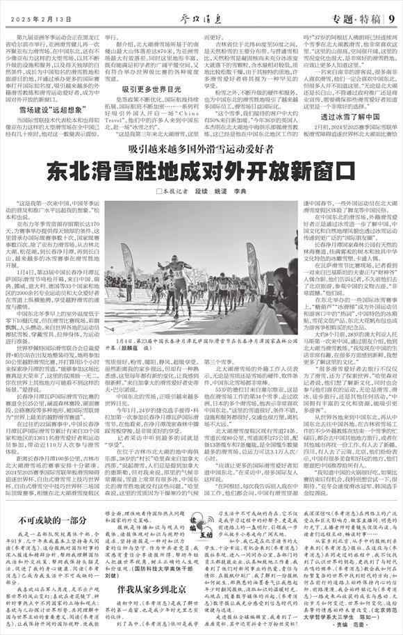 第九届亚洲冬季运动会正在黑龙江省哈尔滨市举行,亚洲滑雪健儿再一次齐聚亚布力滑雪场。在中国东北,还有不少像亚布力这样的大型雪场,以其不断升级的设施和服务,以及得天独厚的自然条件,成长为中国知名的滑雪胜地和旅游目的地,并通过承办更多的国际赛事打开国际知名度,吸引越来越多的外籍滑雪教练和滑雪运动爱好者,成为中国对外开放的新窗口。