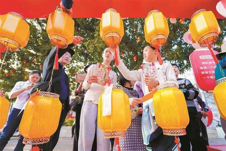 南沙蕉门公园活力广场举办元宵灯会游园活动,市民在猜灯谜。广州日报全媒体记者莫伟浓 摄