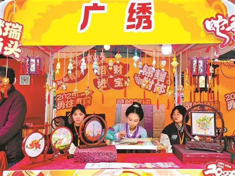 广府庙会以“市集+打卡+体验”的形式,举办潮墟和直播活动,邀请非遗传承人进行展示展销。