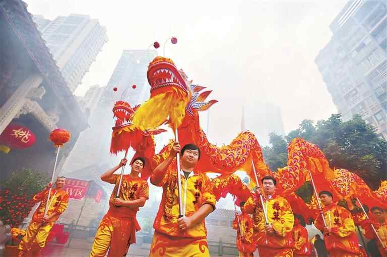 正月十五元宵佳节,广州天河区石牌村内锣鼓喧天、鞭炮齐鸣,一场热闹的龙腾狮跃贺元宵活动举行。
