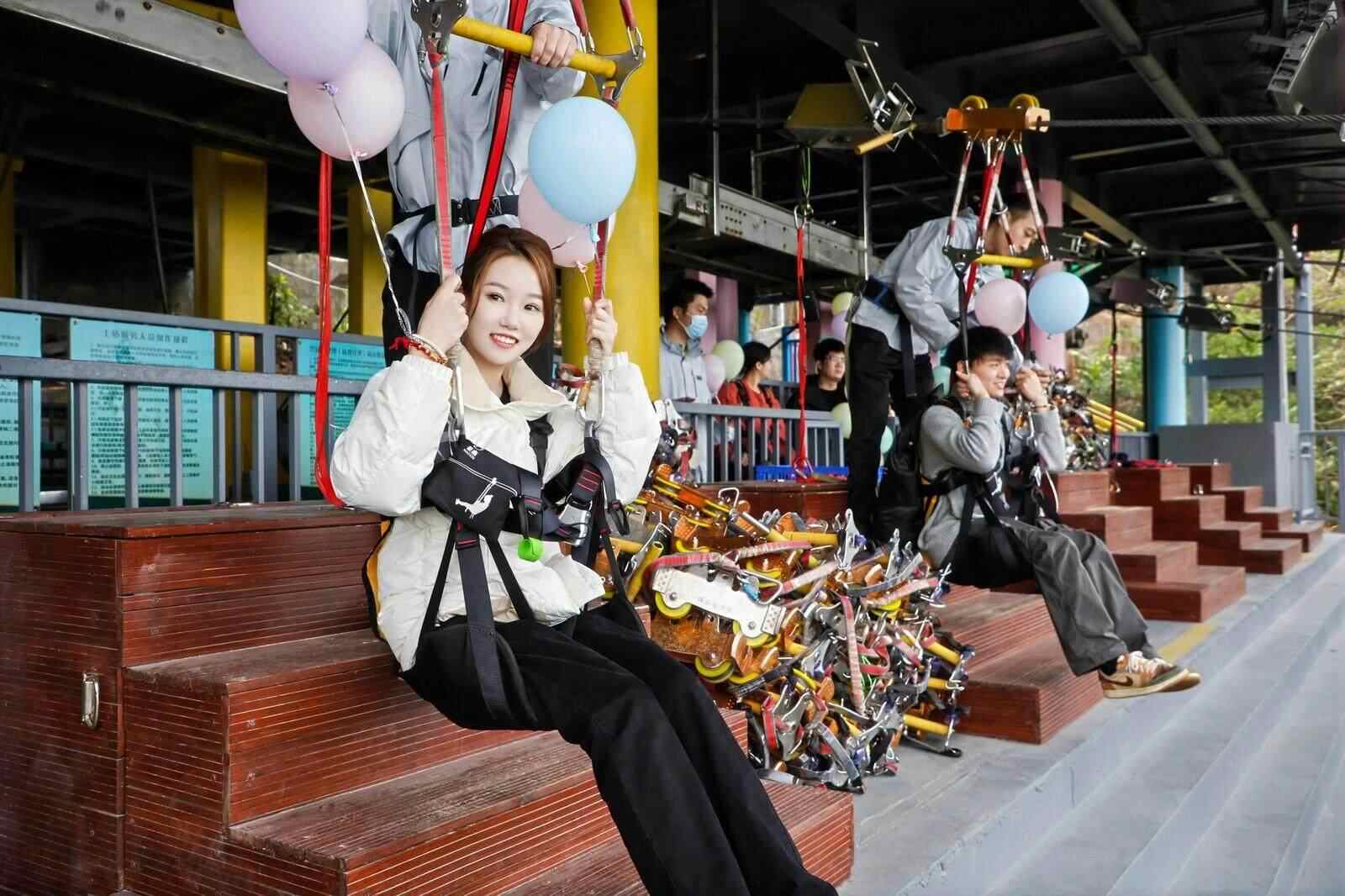 特别值得一提的是,活动还设置了“比翼双飞”环节。两对新人和两对国际友人尝试白云飞索项目,从摩星岭西侧沿直线1500米飞越至山脚的黄婆洞水库,整个过程仅需3分钟。他们在高空中感受着群山的壮丽,俯瞰广州市区唯一的山谷丛林水库,体验心跳加速的刺激感。