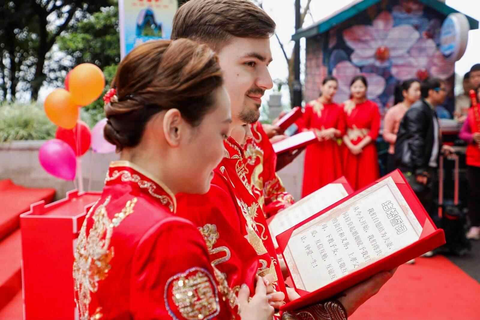 “这个地方真是令人叹为观止,我被博大精深的中国文化深深震撼,尤其是传统婚礼和那些古老的习俗。这段独特的体验,我将永生难忘。”俄罗斯小伙在他的中国新娘的带领下体验了中式传统婚俗,作为一名博主,他将在国内外社交平台上分享这段特殊的经历,“这是一场特别的婚礼,希望我们的未来如树一般,或许各自生长、枝叶分离,但无论未来如何,愿我们的根永远紧紧相依。”