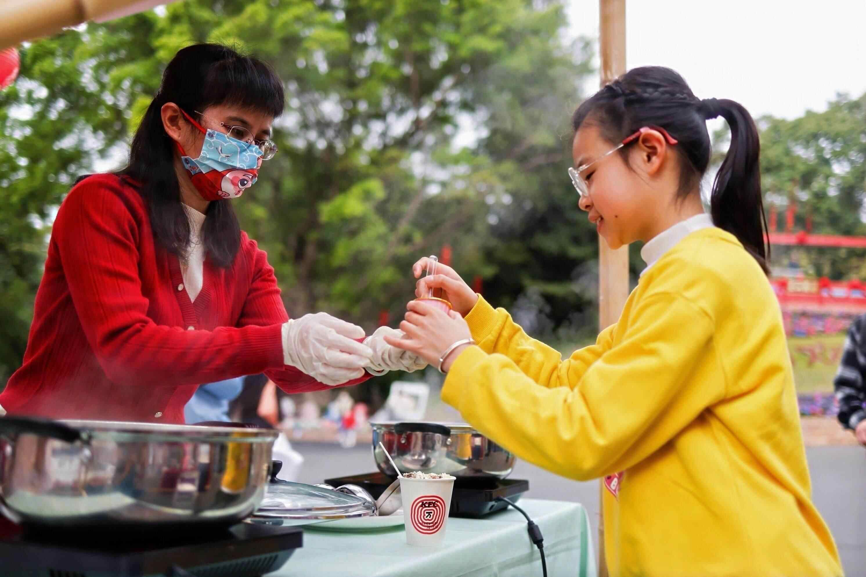 为了让游客沉浸式感受节日氛围,景区还举办“做汤圆”体验活动:游客在师傅指导下动手揉面、包馅,制作出形态各异、充满心意的汤圆。这些创意十足的汤圆摆满了桌面,成为一道独特的风景线,游客们品尝着自己亲手制作的汤圆,整个现场充满温馨与欢乐的氛围。