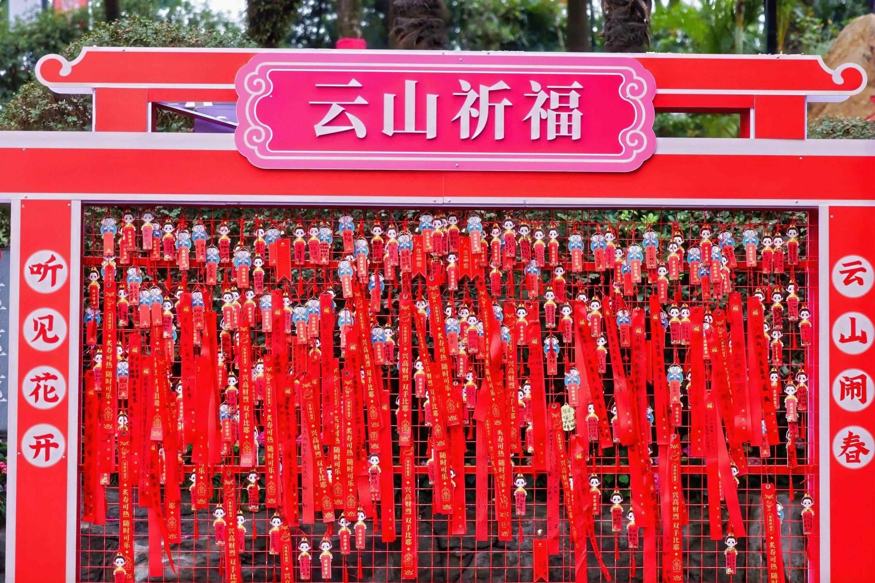 剪纸区域内,游客们亲自动手制作一幅幅精美的剪纸作品,感受中国传统民间艺术的独特魅力;DIY灯笼区域,不少市民动手组装专属灯笼,并将其挂在云山祈福处,寄托美好祈愿;猜灯谜区更是人气爆棚,游客们纷纷驻足在悬挂着的灯谜前,绞尽脑汁猜想谜底,猜中者还能获得精美的灯笼作奖品,增添一份节日的喜悦……
