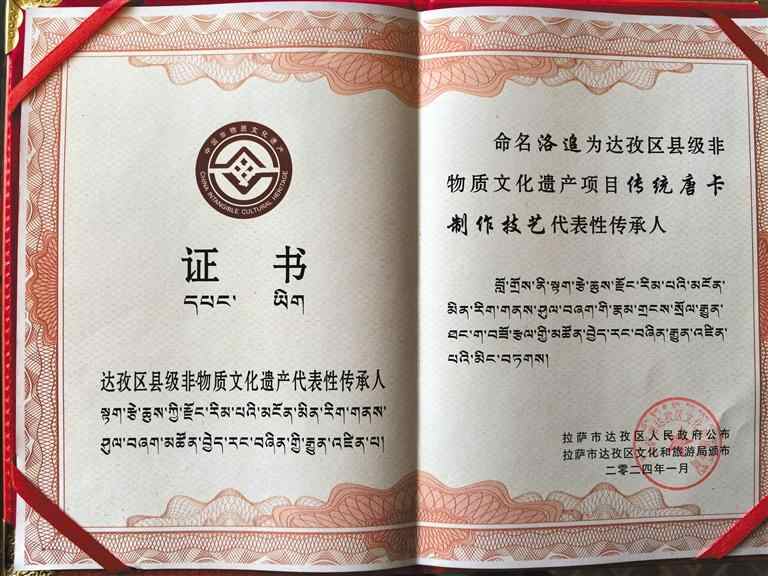 十多年来始终不懈地致力于唐卡艺术的传承工作,让洛追获得了不少奖项。2012年《大威德金刚》荣获2012年全国民族地区职业院校教学成果展演活动学生作品展览金奖,2014年获得高级技能证,2016年参加“指尖神韵”藏族唐卡大师丹巴绕旦师徒作品展,2017年获得第七届西藏唐卡艺术博览会“优秀唐卡画师”荣誉称号,2019年获得创新创业技能竞赛唐卡绘画金奖,2018年获得达孜区第三届青年创新创作大赛一等奖,2023年洛追成为达孜区县级非物质文化遗产项目传统唐卡制作技艺代表性传承人。(图/文 记者 刘斯宇)