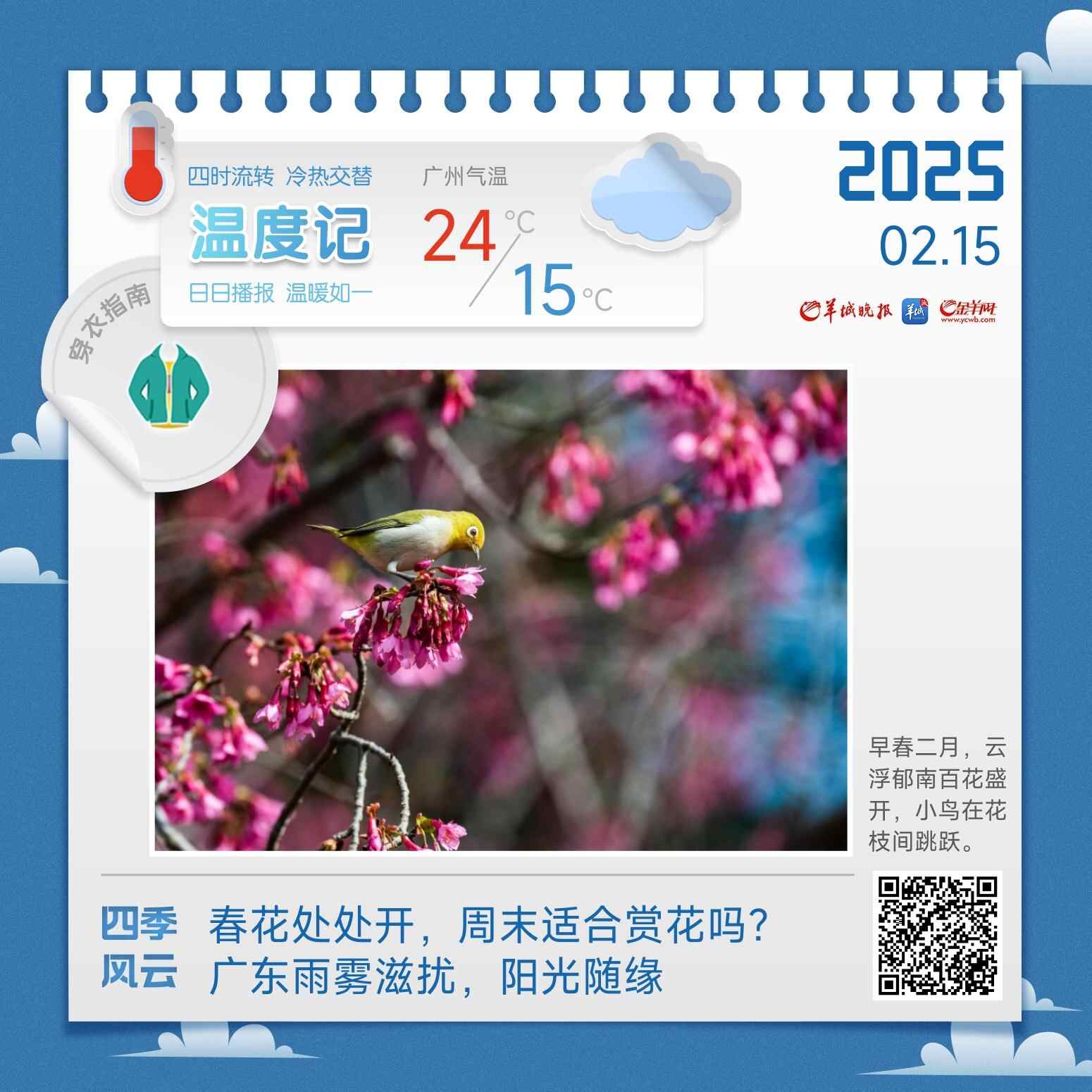 但赏花指数暂未达到“五星推荐”,因为与春花更搭的阳光摸鱼了。这个周末,广东云量增多,雾气增加,部分市县还有小雨出没,遇见阳光就看缘分了。而在下周,阳光将积极上班,更适合拍摄“春花灿烂”大片。