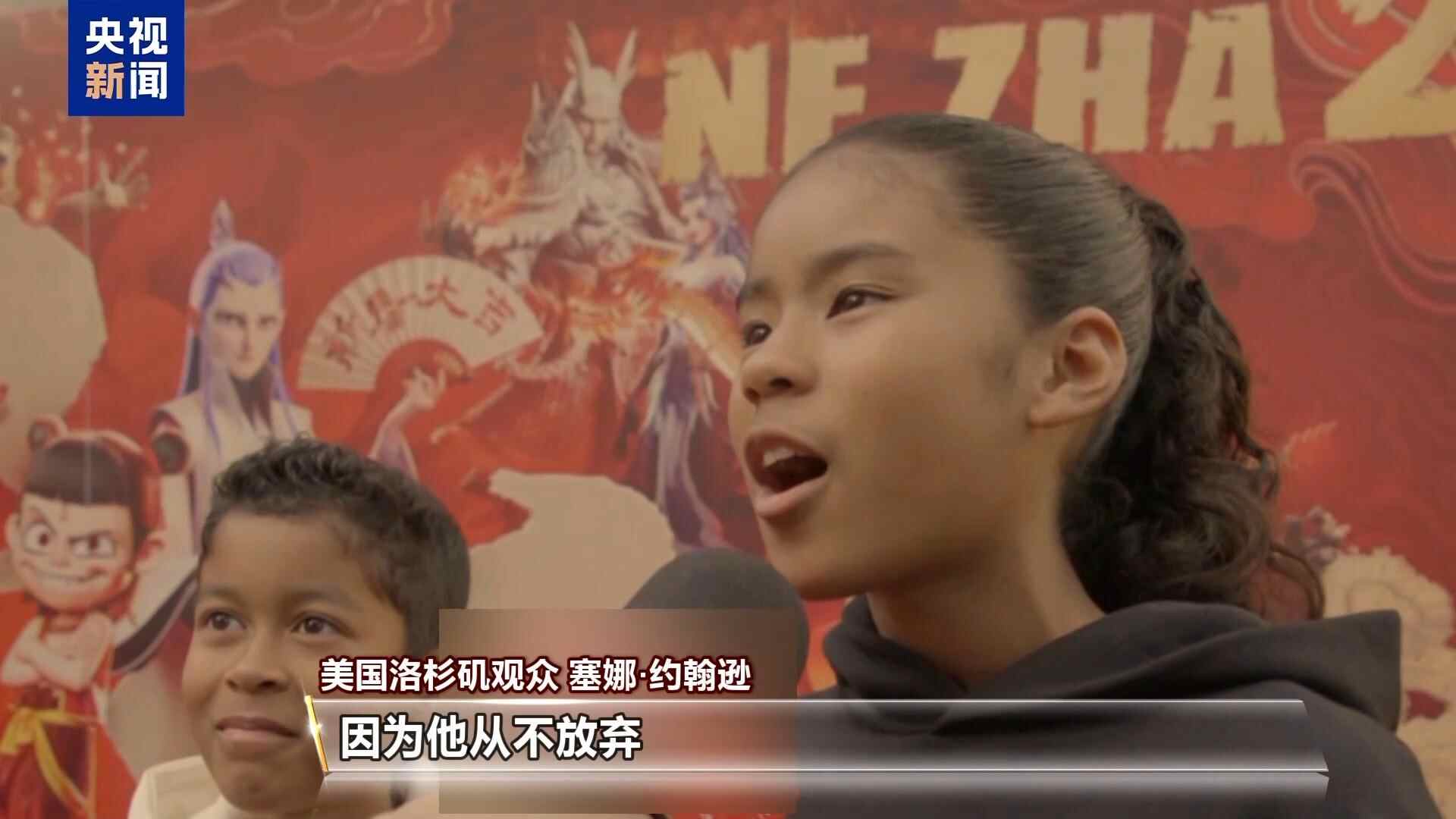 美国洛杉矶观众 塞娜·约翰逊:我最喜欢主角哪吒,因为他从不放弃,他永远积极向上,他志向远大、勤奋努力,同时又诙谐搞笑。