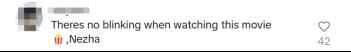 “一部堪称完美的史诗级动画电影。电影视觉表现:10分;情节节奏:10分;主题思想:10分;人物塑造:10分。最重要的是,这部电影展示了大量工艺,通过幕后花絮短片可以看到,水下牢狱中怪物身上的数百万条锁链是由创作者一根一根制作出来的,令人瞠目结舌!我向他们致敬!而鼎上的神树,是仙人们一块一块垒起来的,这制作起来想必非常费力,从中可以感受到创作者投入的真诚和努力。”