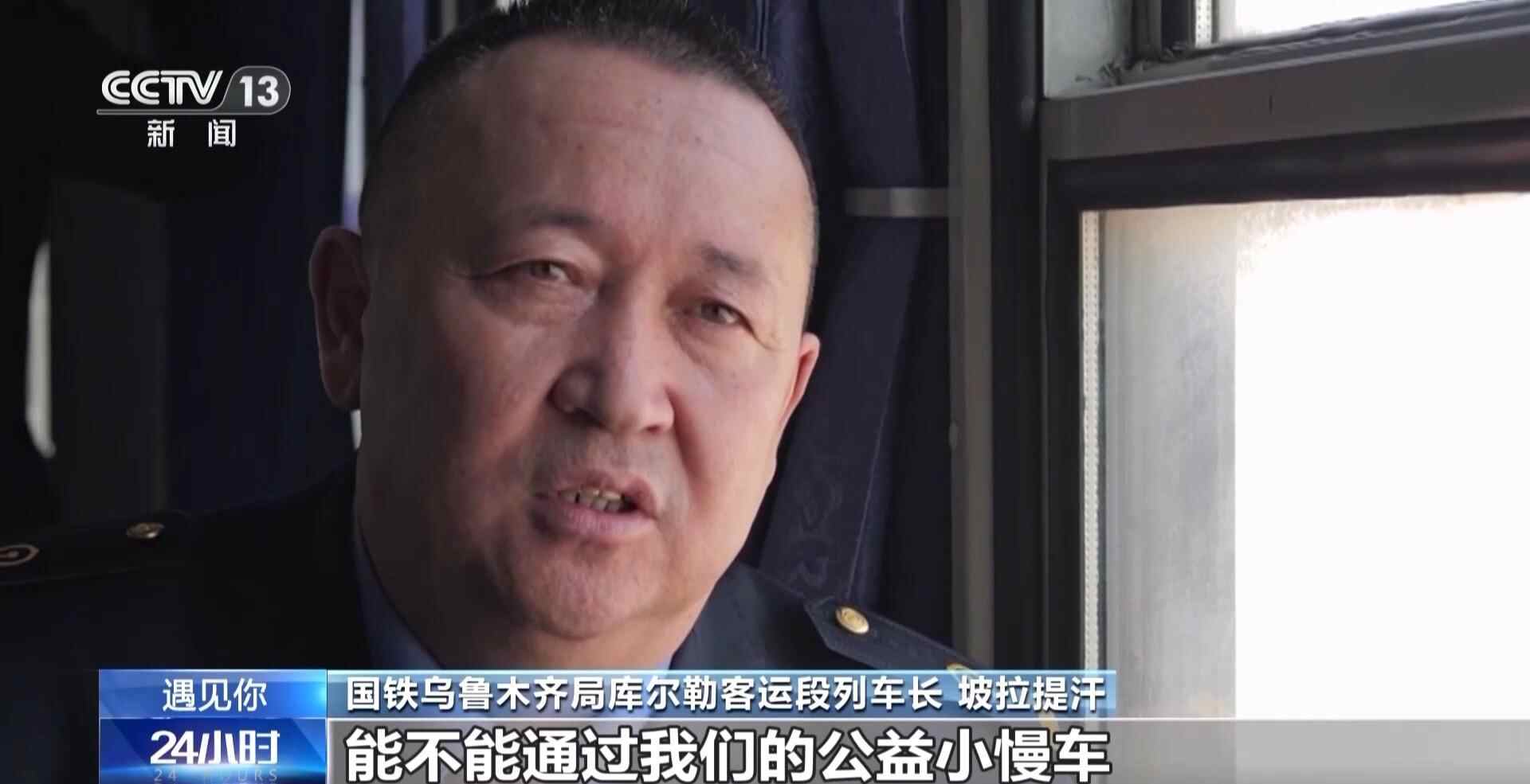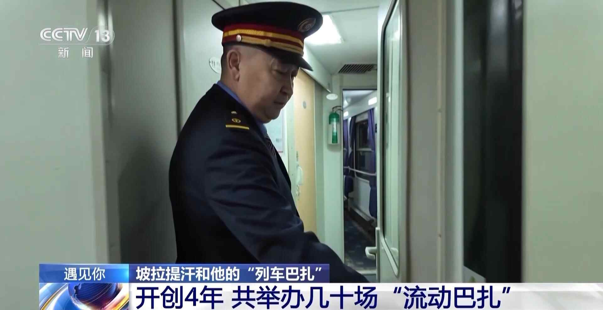 从2011年,和田到乌鲁木齐之间这趟公益小慢车开行开始,坡拉提汗就成了这趟列车的列车长。和田到乌鲁木齐之间的这条线路,他跑了快14年。而他一手操办起来的列车流动巴扎也马上就要4岁了。