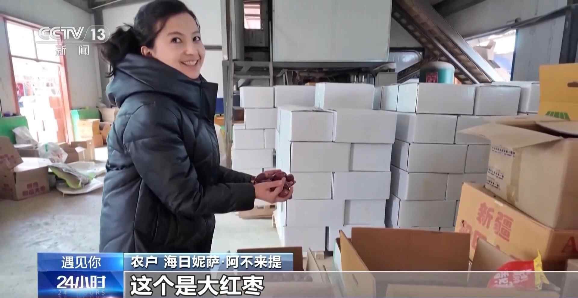 农户 海日妮萨·阿不来提:一月份到十二月份,每个月都有葡萄干,这个工厂里面,大红枣也有。你看这个是无核白葡萄干,这个是大红枣。
