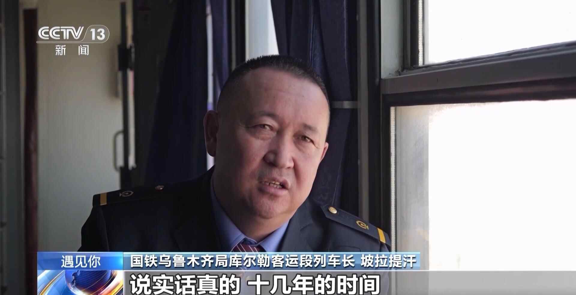 国铁乌鲁木齐局库尔勒客运段列车长 坡拉提汗:我是土生土长的新疆人,也是南疆跑了十几年。其实我们南疆的变化,我一点一滴都看得出来。说实话真的,十几年的时间,以前皮山站、叶城站,火车站跟前什么都没有,全是戈壁滩、沙子,现在全是高楼大厦。我能在我的工作范围之内,能帮更多农民,这是我最大的愿望。