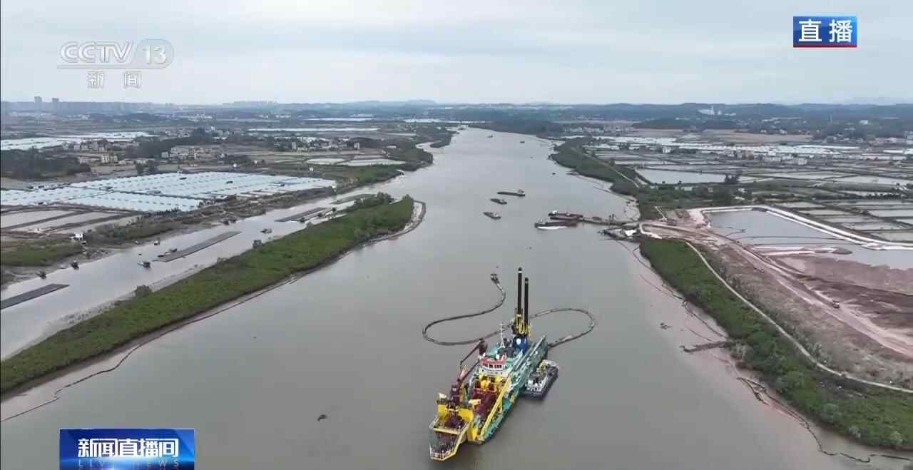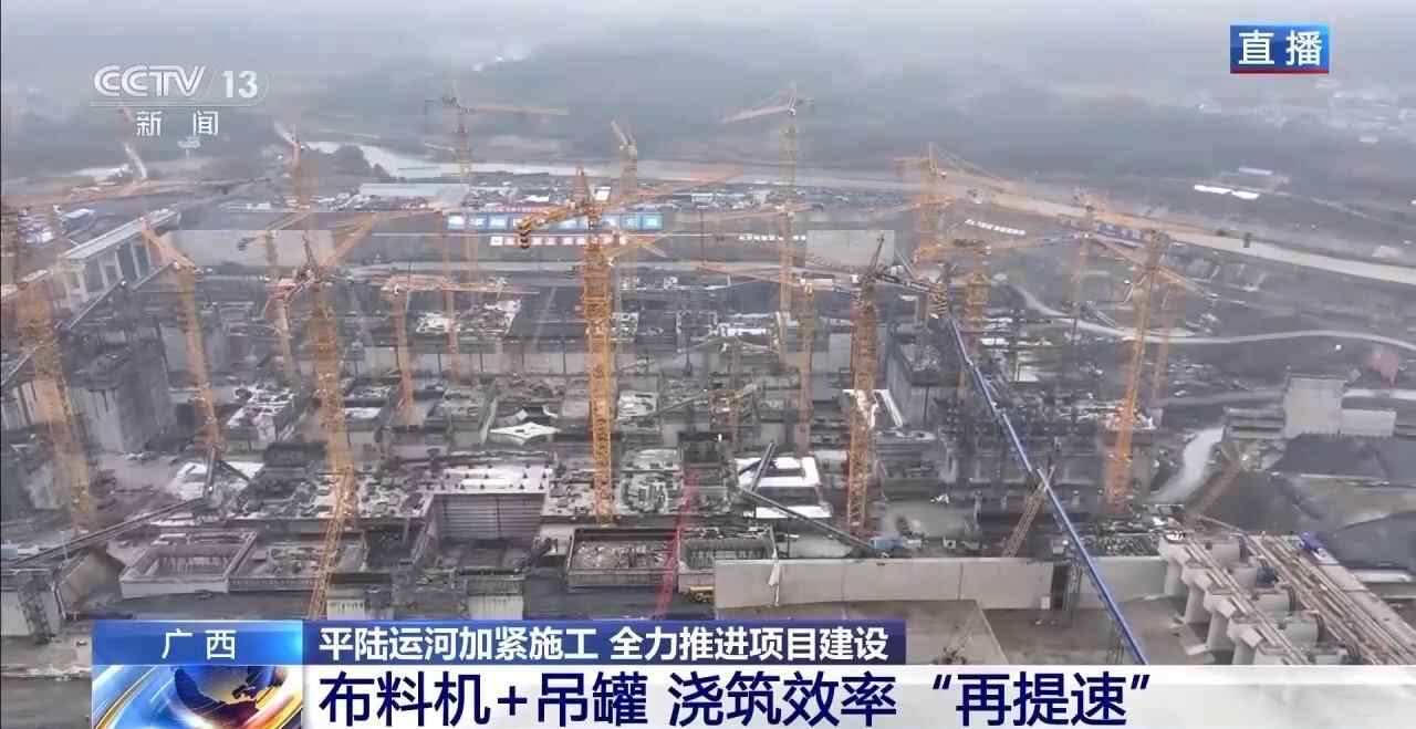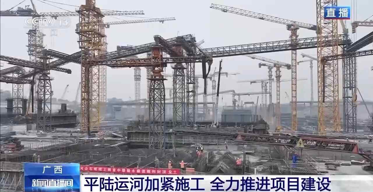 总台记者 廖汨:我正在平陆运河第二座梯级枢纽企石枢纽的建设现场。此时此刻,建设者们正在抓紧时间对船闸主体进行混凝土浇筑。