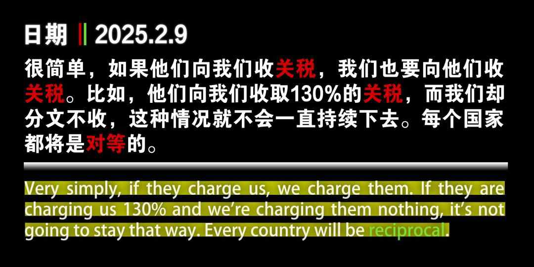 此前,特朗普在接受媒体采访时说的是“报复关税”(retribution tariff),而不是“对等关税”(reciprocal tariff)。