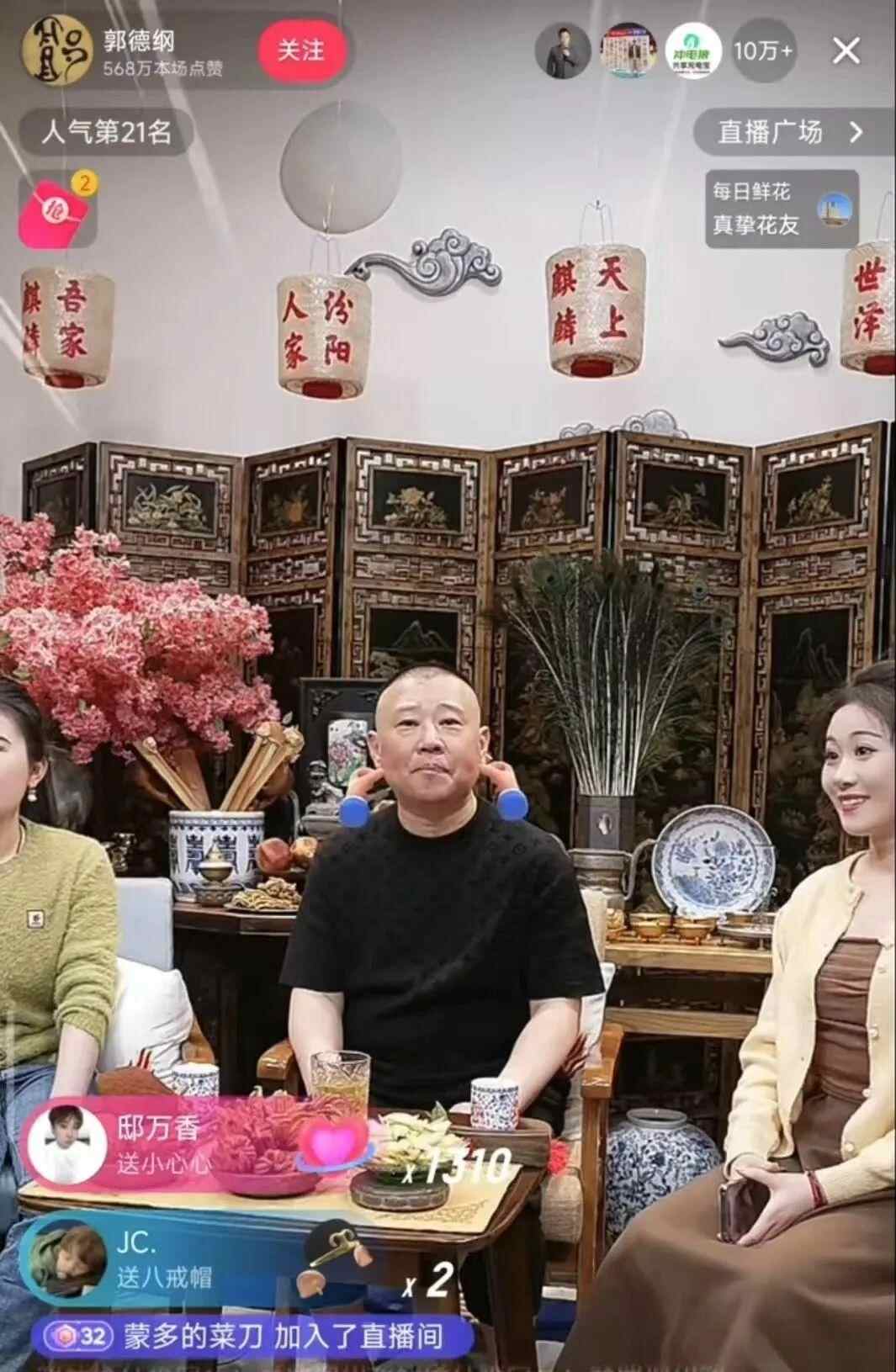 据悉,郭德纲当晚直播的四个多小时中,观看人数维持在在10万+,礼物不断,人气高涨。
