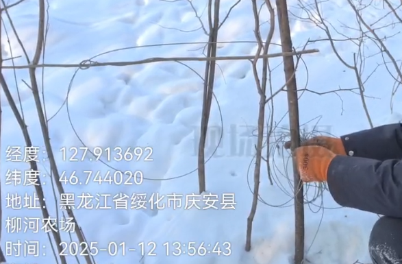 志愿者还称,2025年1月11日、12日,他们来到伊春市铁力市桃山镇、双丰镇,绥化市庆安县等地的林场,在现场发现了猎套以及血迹残留。现场视频显示位置为“伊春市铁力市桃山镇”“伊春市铁力市双丰镇”以及“绥化市庆安县柳河农场”。