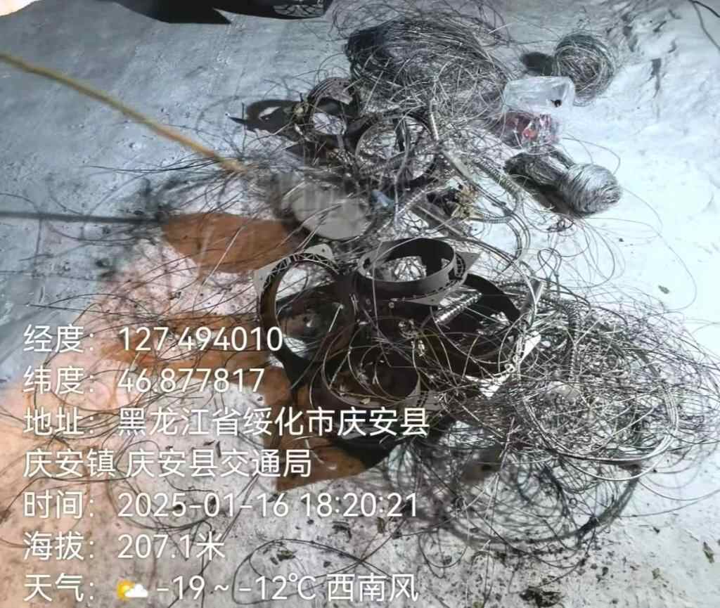 据前述文章介绍,2024年12月底至2025年1月中旬,在伊春铁力市、绥化市庆安县等地林区边缘,志愿者又发现并拆除大量非法猎捕工具,包括大猎套、小猎套、带报警器的弹簧套和电网等,还发现疑似野生动物被宰杀现场。