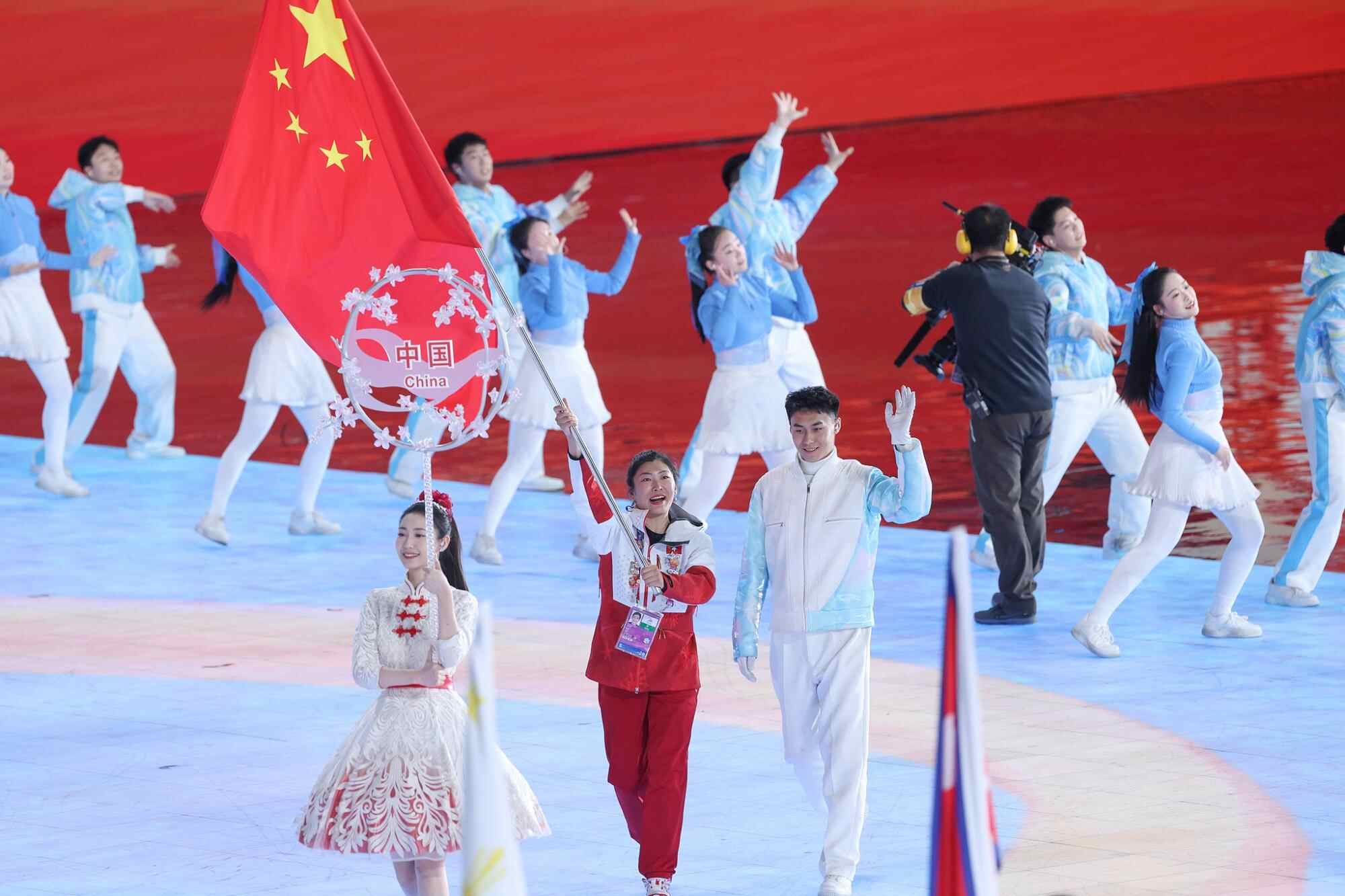 哈尔滨亚冬会闭幕式:徐梦桃担任中国代表团旗手