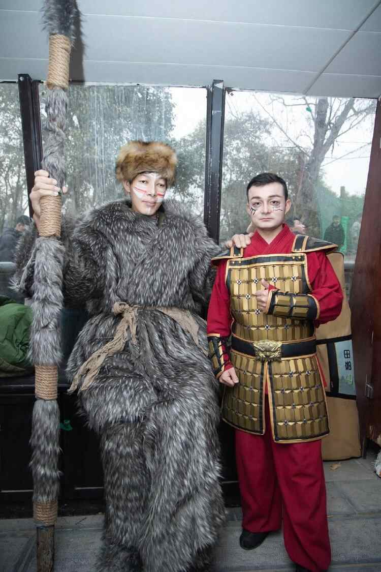 在河南开封万岁山大宋武侠城的仿宋街上,每天上午10时,“锵”一声铜锣响后,穿着灰白皮草的阿卜杜卡哈尔拄着“权杖”,自城楼缓步而下。身高1.65米的弟弟努尔艾力·赛麦提,像“带刀侍卫”一样紧紧守在哥哥身旁,形成鲜明的反差。