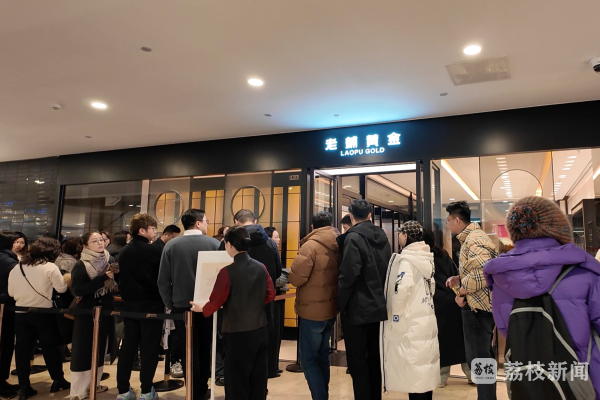 2月14日9时,位于南京新街口商圈的一家黄金饰品店门已经排起了长队。图源:荔枝新闻