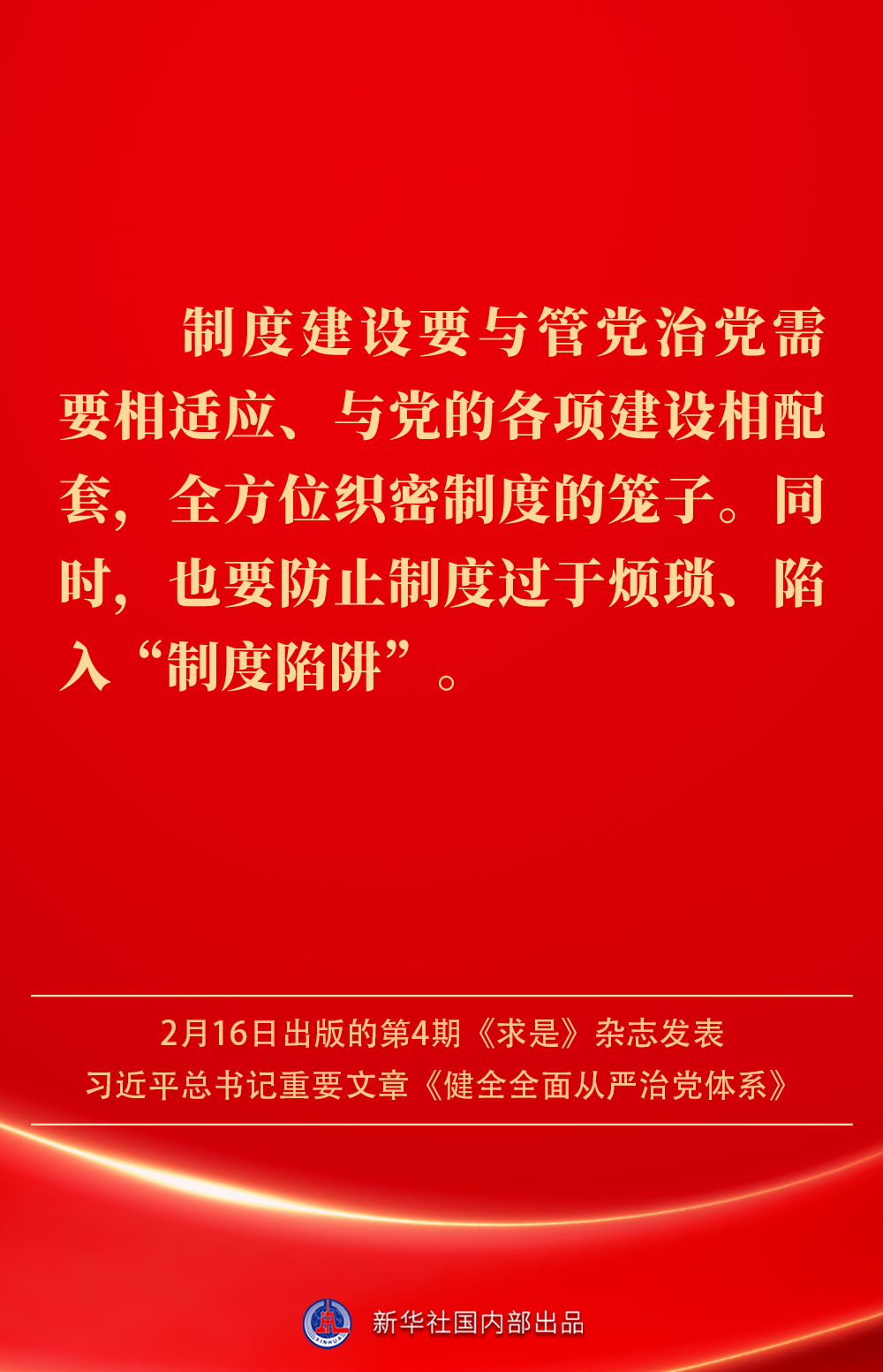 2月16日出版的第4期《求是》杂志发表习近平总书记重要文章《健全全面从严治党体系》。如何进一步健全要素齐全、功能完备、科学规范、运行高效的全面从严治党体系?习近平总书记阐明要旨——