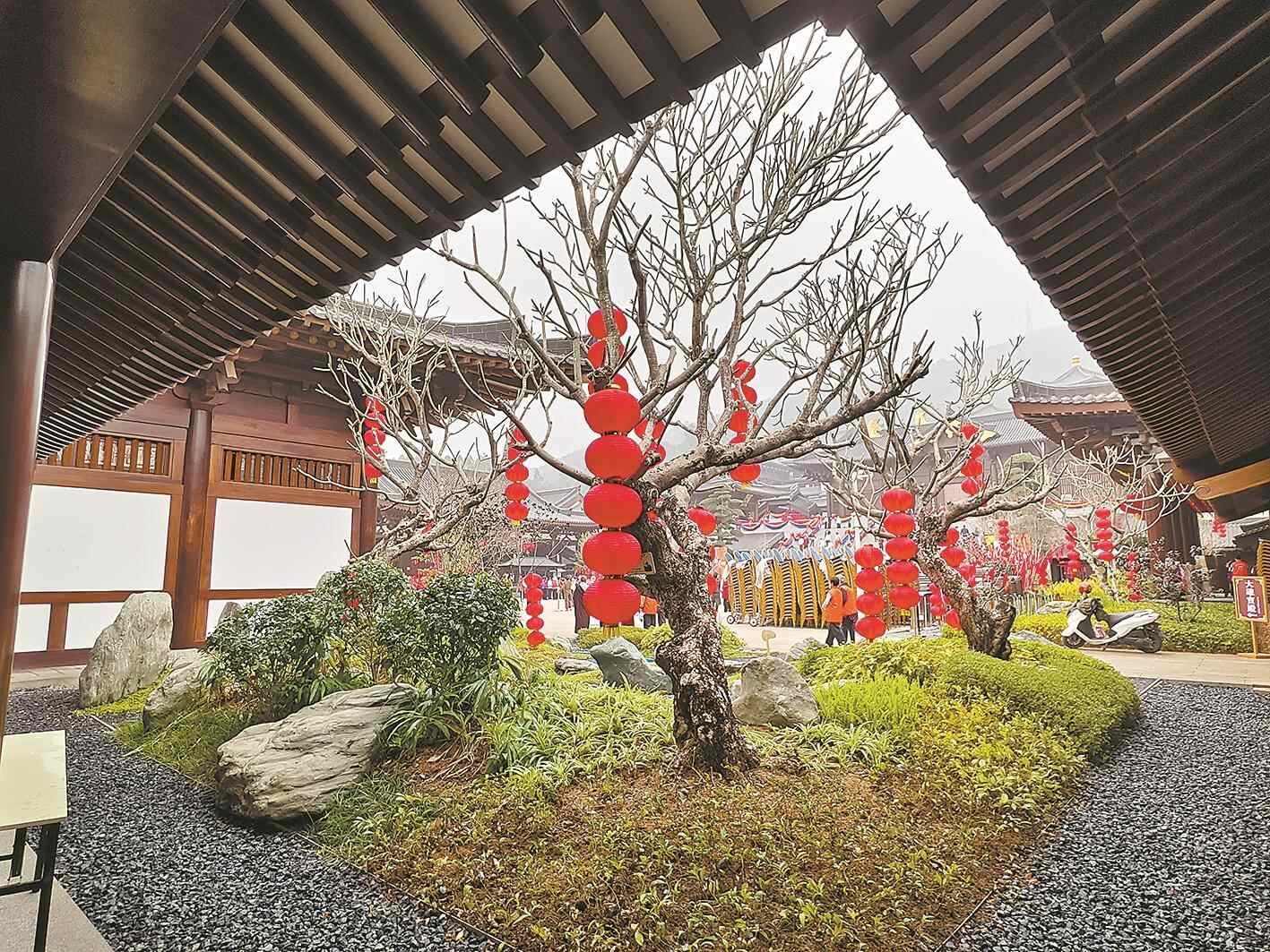 2月16日,广州市增城区的百花古寺正式落成。走进这里,紫薇、木棉、玉兰等岭南草本植物融入禅意庭院,让人在花香与水声中感受自然韵律。