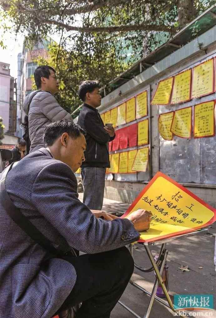 这边厢老黄还在寻觅更合适的机会,那边厢“90后”湖北人小张已经在街上招到了两个工人,只要再招3个人,他一天的招工KPI就算完成了。