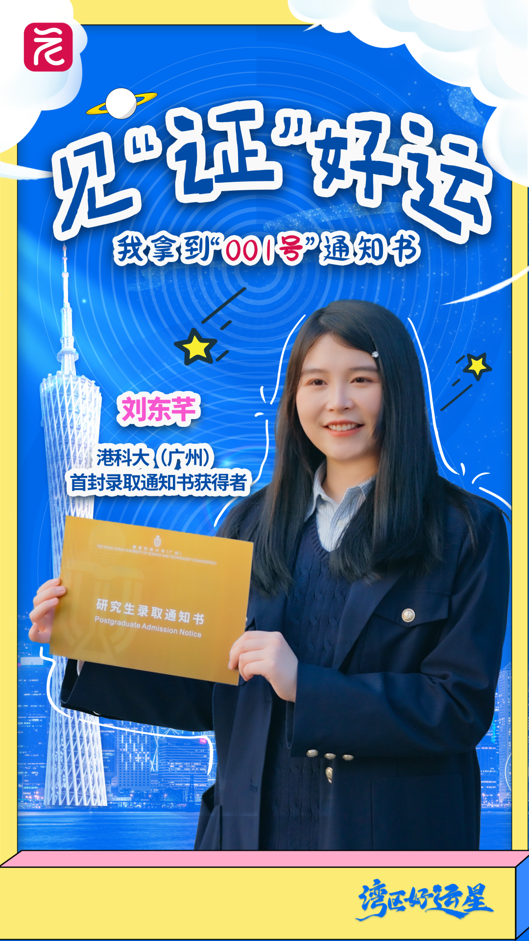 2022年,刘东芊拿到港科大(广州)校史上的第一封录取通知书。