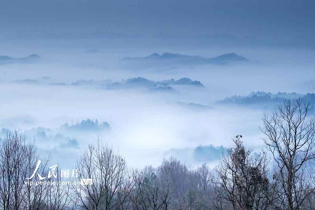2025年2月17日,在安徽黄山市休宁县山区乡村出现了唯美壮观的云海,美轮美奂,宛若人间仙境。王运选摄(人民图片网)